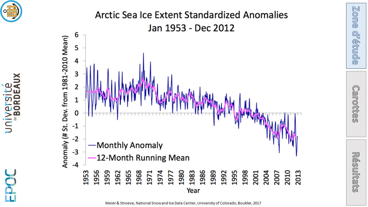 Aujourd'hui, j'ai le plaisir de vous parler de ma thèse réalisée sous la direction de Frédérique Eynaud (EPOC), Sébastien Zaragosi (EPOC), Élodie Marchès (Shom) et Thierry Garlan (Shom), portant sur l'étude de carottes sédimentaires prélevées dans les mers nordiques.