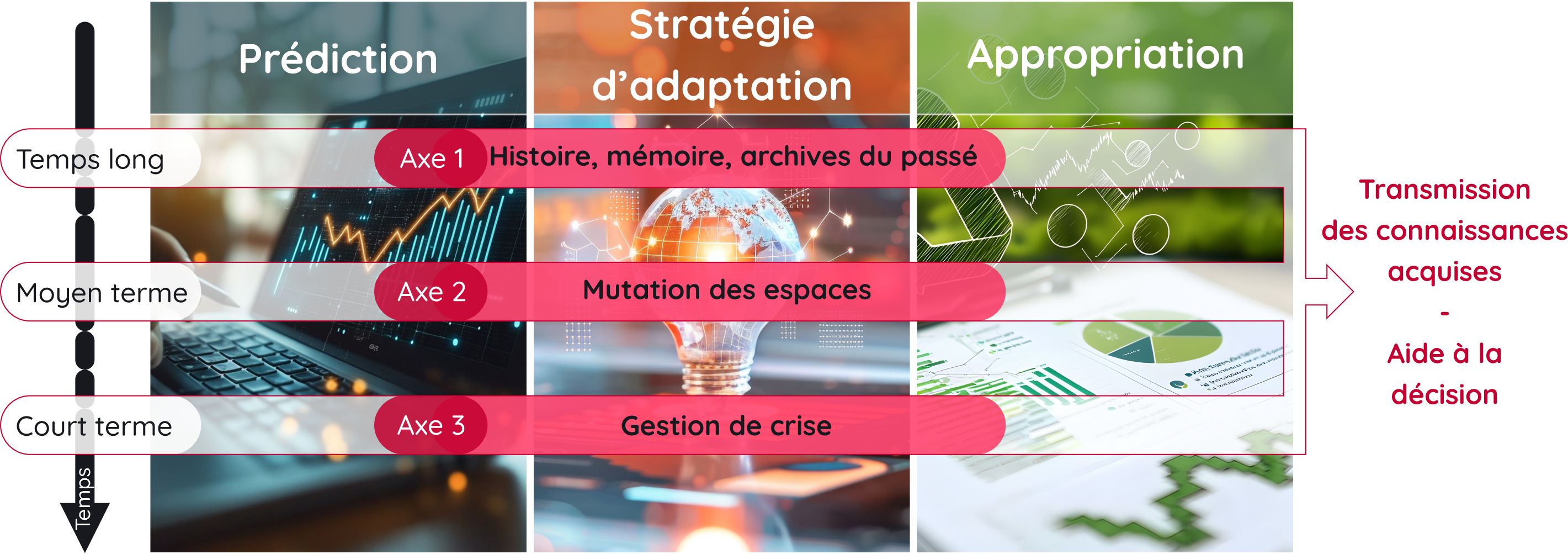 - le temps court suite aux crises (l'échelle événementielle, traitée dans l'Axe 3 du programme).