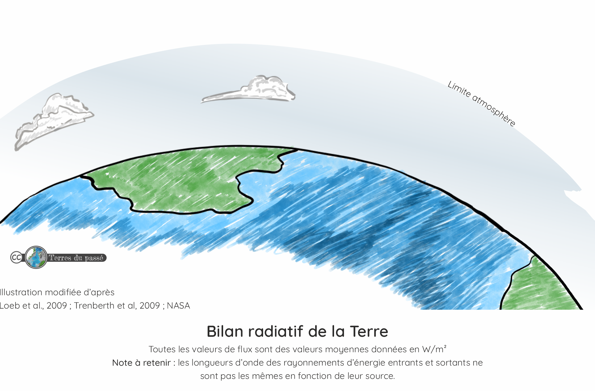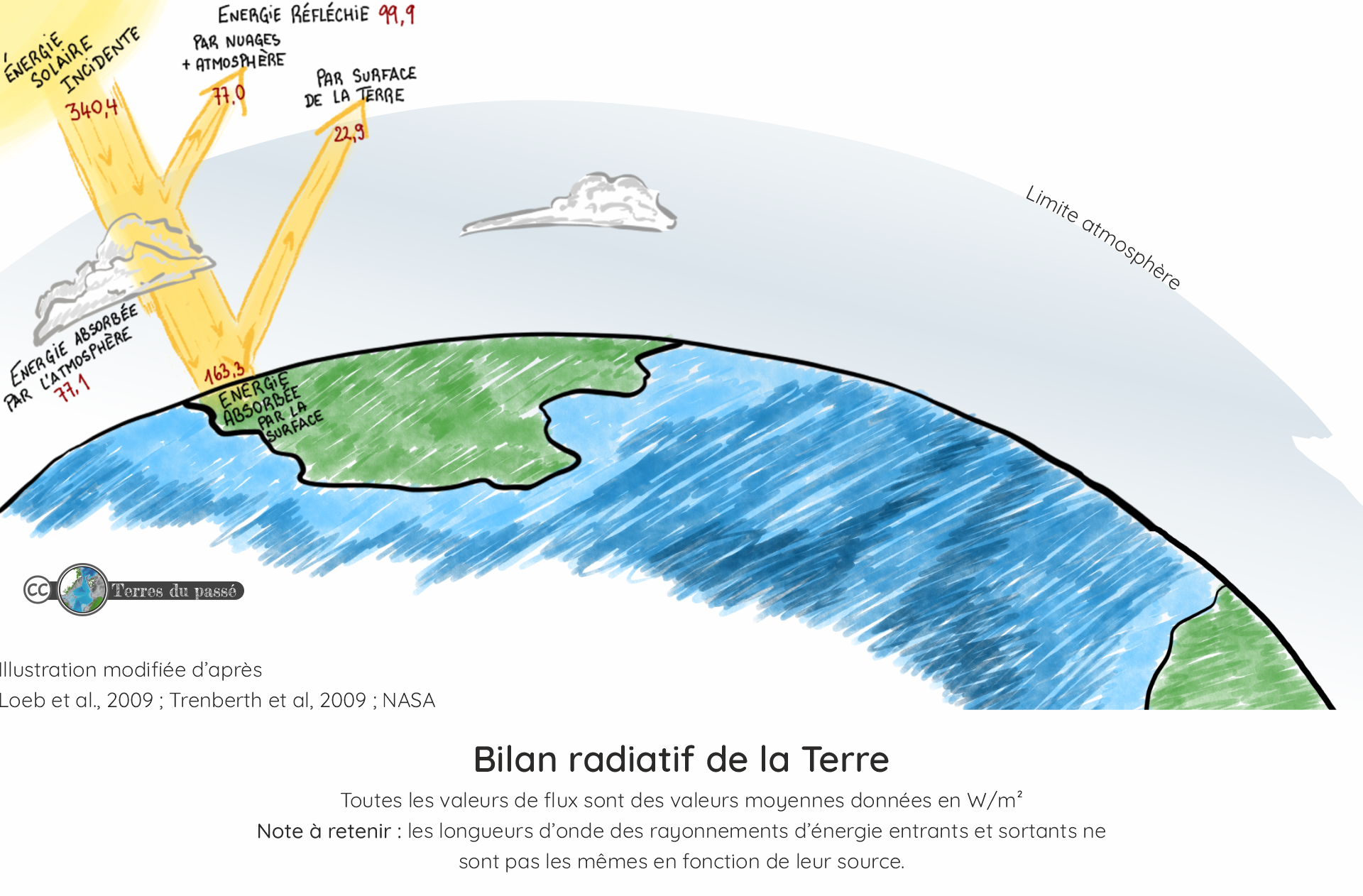 Pour que la température de la Terre soit stable sur de longues périodes (pour que le budget énergétique soit en équilibre), la quantité d’énergie entrante et la quantité d’énergie sortante doivent être égales.