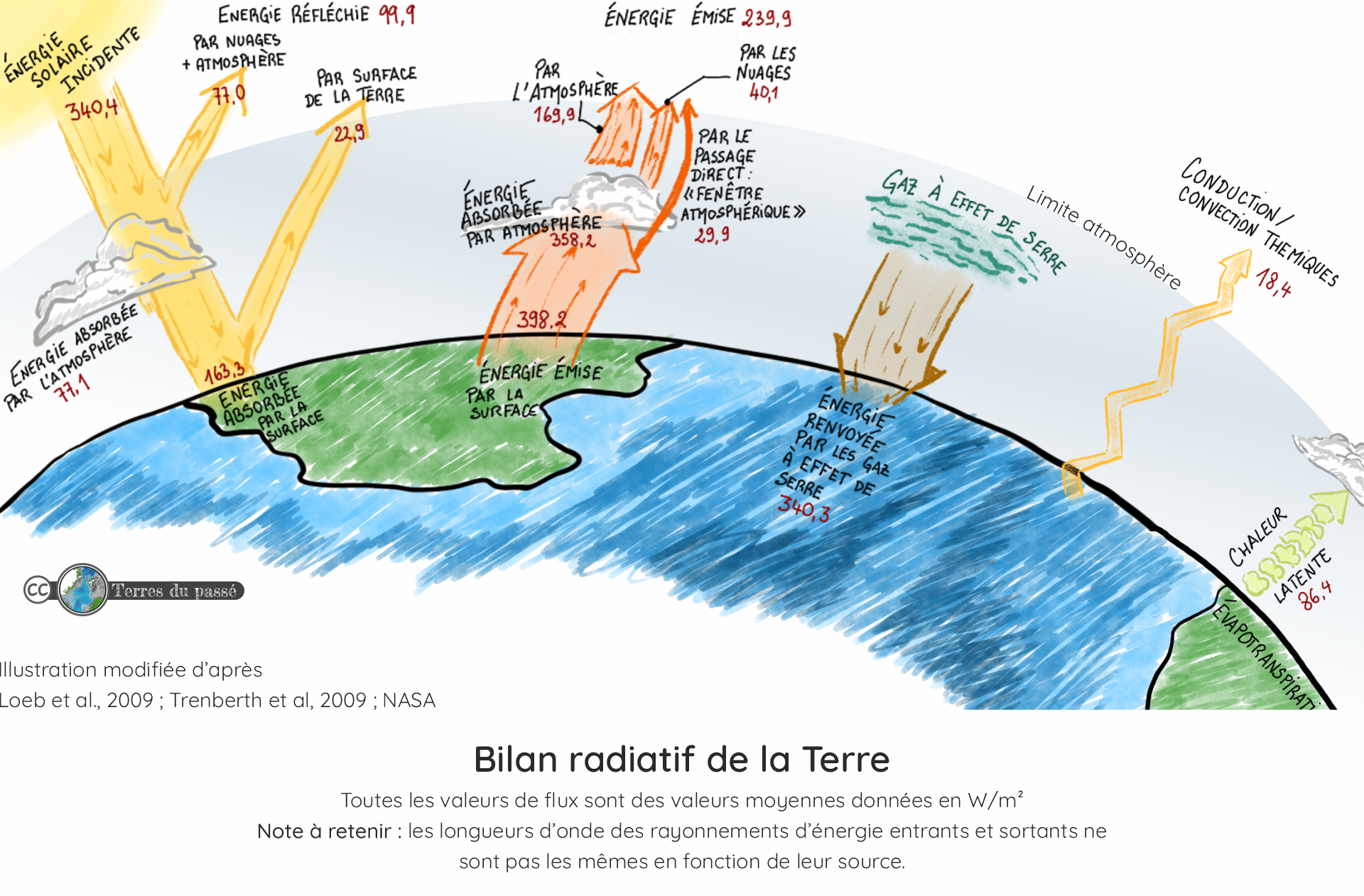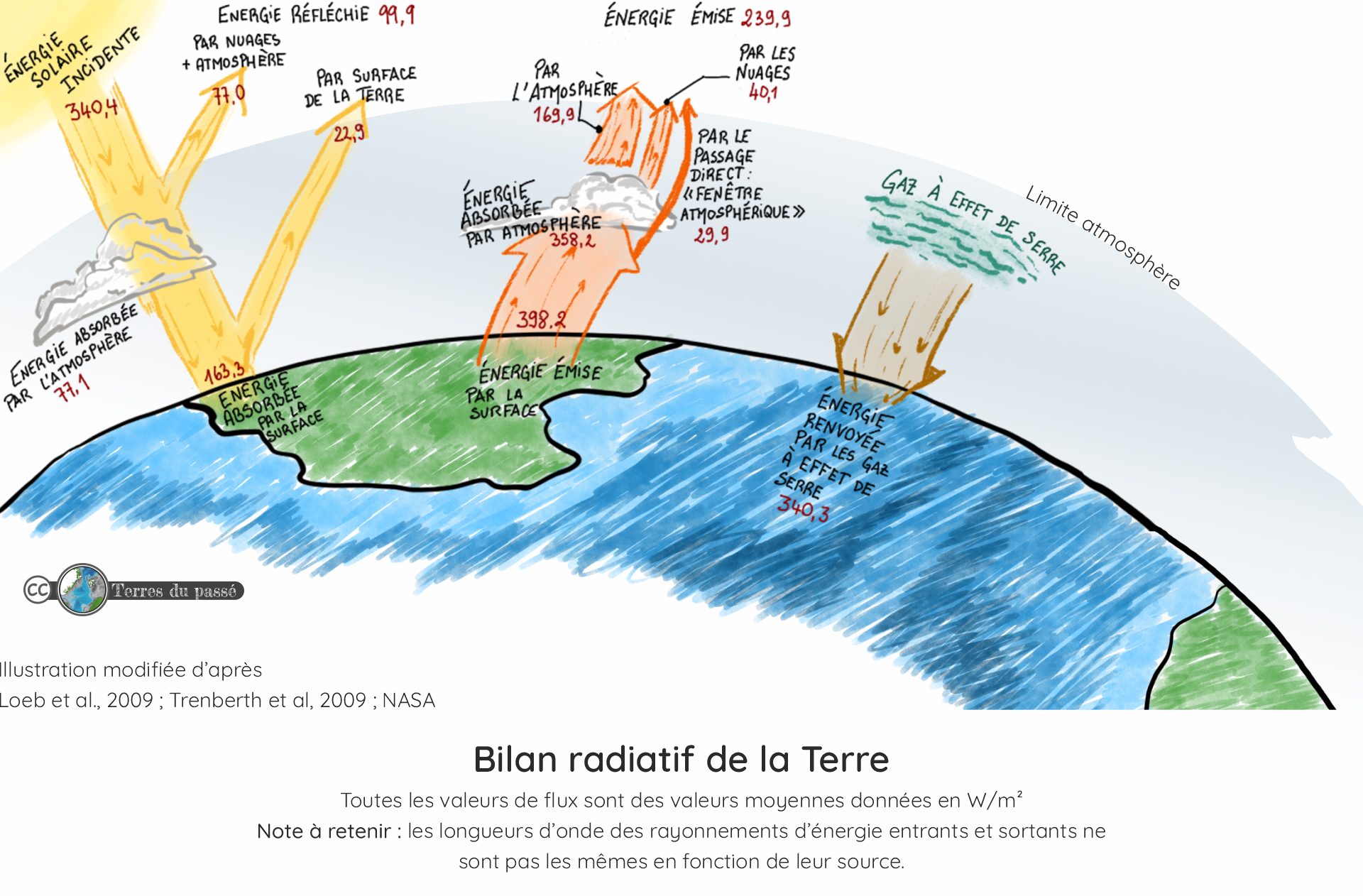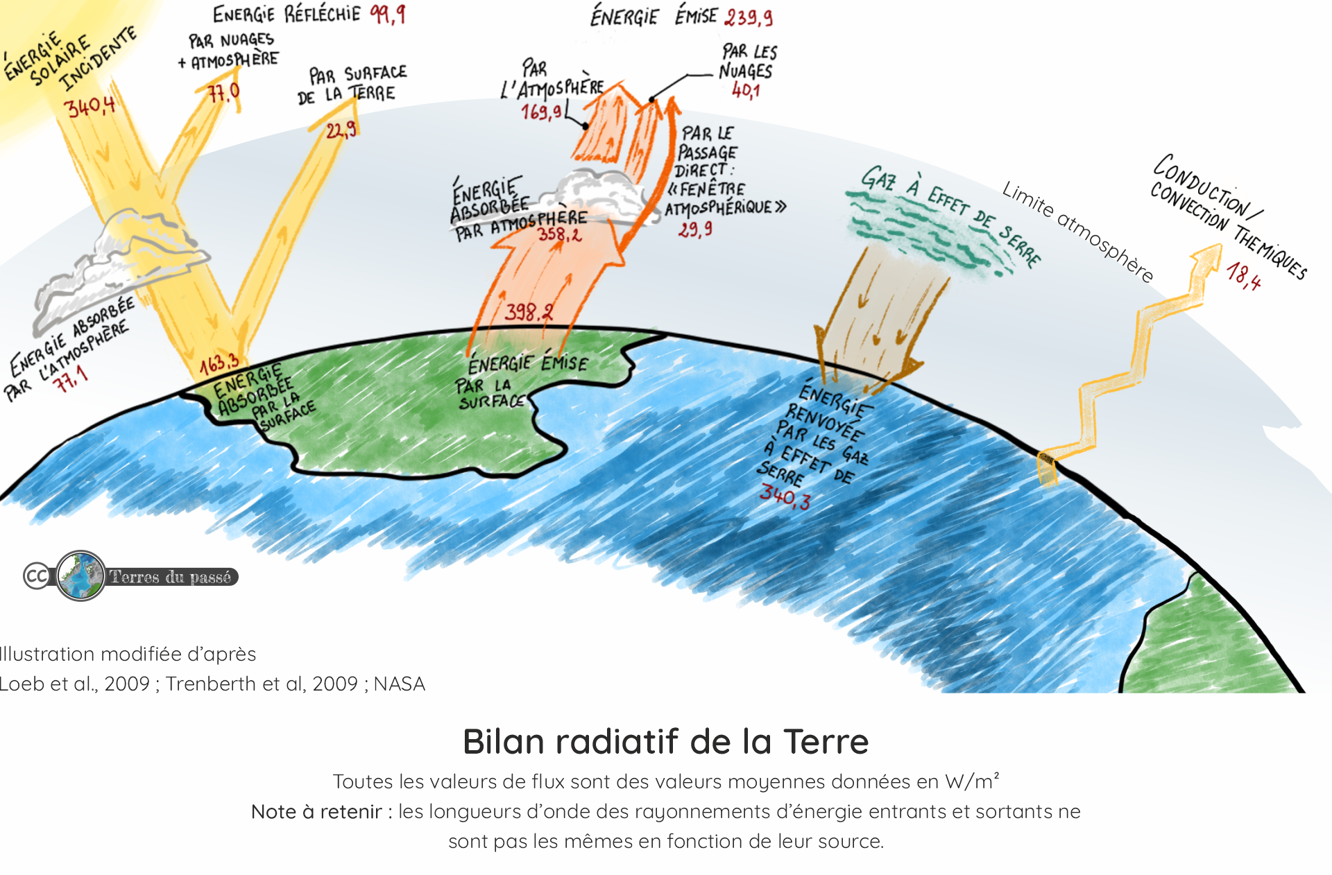La Terre émet 398,2 W/m² sous forme de chaleur.